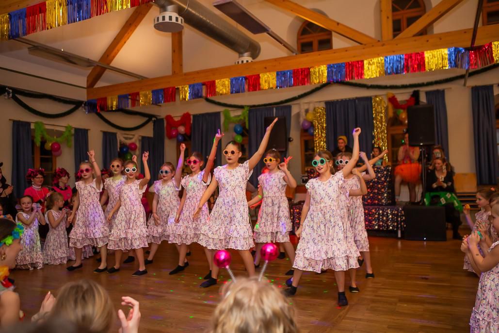 Nach dem Aufwärmen und dem gemeinsamen Dehnen, wird den Mädels eine selbst einstudierte Choreografie Schritt für Schritt beigebracht. Jedes Jahr tanzen wir zu einem selbst auserwählten Thema, zu welchem die Mädels auch passende Kostüme bekommen. Durch Spenden der Mädelmamas finanzieren wir diese.