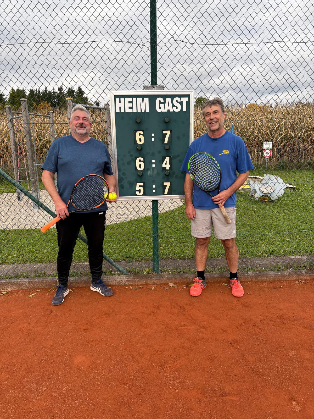 Walter Gütlhuber und Reinhard Reichgruber traten im Rahmen der Vereinsmeisterschaften bereits das zweite Mal gegeneinander an. Wie bereits in der Vorrunde, konnte Walter auch das Finalspiel für sich entscheiden, mit einem Ergebnis von 6:4 und 6:3.